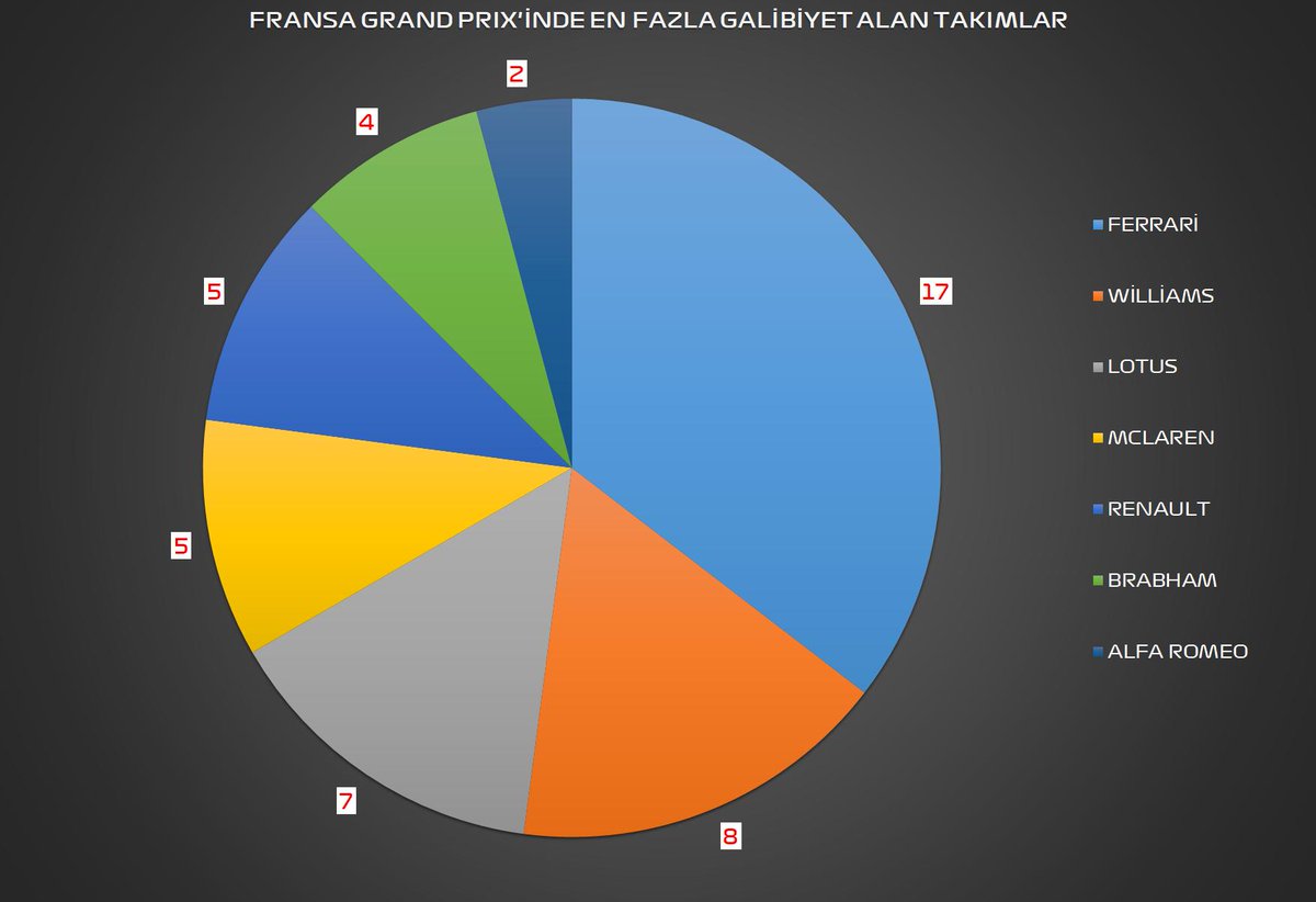 FransaGP'de şimdiye kadar en çok kazanan takımlar.