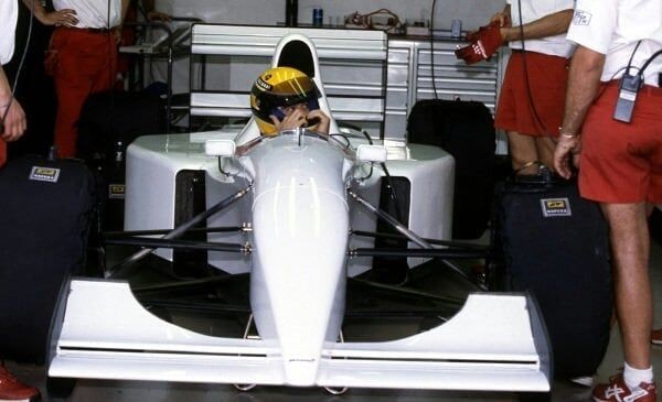 Ayrton Senna 1993 Portekiz'de McLaren MP4/8B'yi test ediyor.