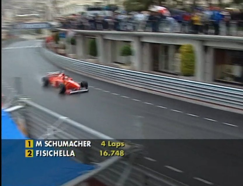 İkinci sıradan başlayıp daha ilk virajda rakibini geçen liderliği aldıktan sonra ilk turu ikinci sıradaki isimden 6 saniye, ikinci turu 5 saniye daha hızlı olup 4 turda 16 saniye fark açan muhteşem Schumacher performanslarından birisi: 1997 Monako Grand Prix.