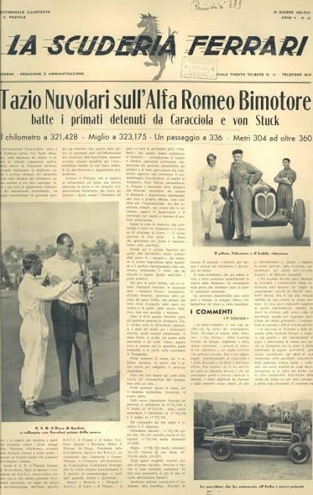 Nuvolari hız denemesine 323,125 km/sa hıza ulaşarak normal yoldaki hız rekorunu ele geçirmiştir.