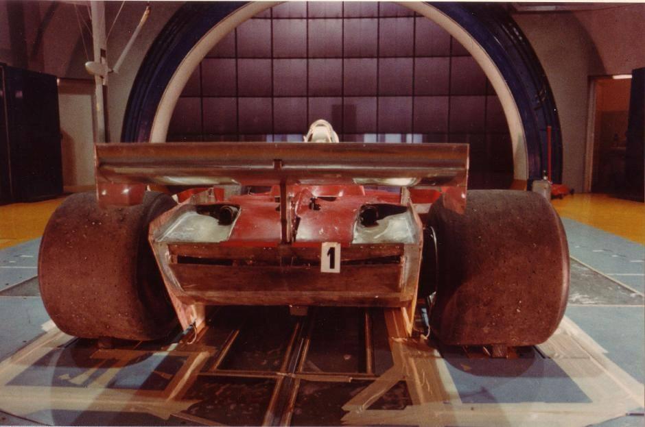 Ferrari'nin ilk yer efekti prensibini denediği araç Ferrari 312T4'ün rüzgar tüneli testlerinden fotoğraf.