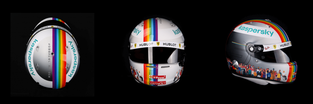 Bu iki dev pilotun ortak bir paydaları da savundukları eşitlik fikrini kasklarına yansıtmalarıydı. Seb gökkuşağı temalı kaskı ilk 2020 Türkiye yarışında takmıştı. Tasarımcısı bu kaskı “içinde olduğumuz zor zamanlarda Sebastian Vettel’in çok değer verdiği ve tasarıma önemli ölçüde ilham veren mesajı kaskın üst kısmında bulabilirsiniz” metniyle duyurdu. Kaskın üstünde “Together as one” yazıyordu. Birlikteliği vurgulayan bu kaskla Vettel, Türkiye’de Ferrari ile son podyumunu elde etti.