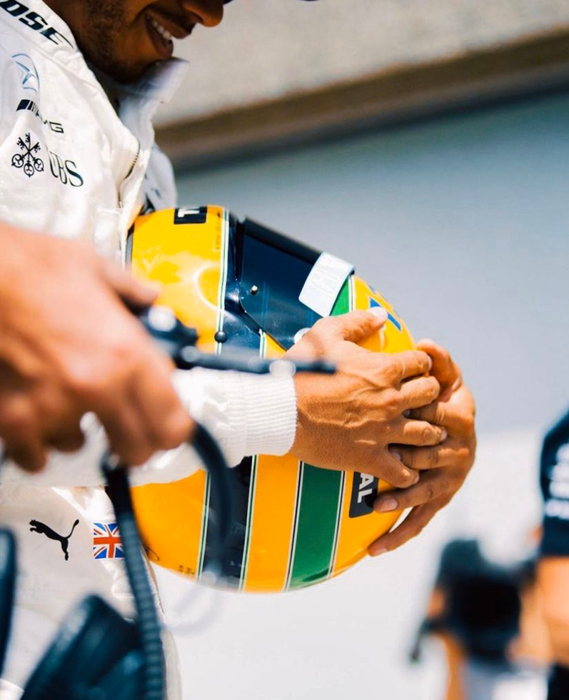 Senna şüphesiz sporla ilgilenen çoğu kişinin hayran olduğu biridir, bazılarının ise kahramanı… Brezilyalıyı kahraman olarak görenlerden biri Lewis Hamilton. Brezilya yarışlarının Lewis için ayrı bir önemi var ve bunu her Brezilya yarışı dile getiriyor. İdolünün evinde yarıştığı her yarışı özel gören İngiliz pilot Brezilya’ya özel kask tasarımları ile de yarıştı. 2017 yılında Kanada’da aldığı pole ile pole pozisyonu sayısında kahramanını yakalayan Lewis’e, Senna ailesi tarafından Ayrton Senna’nın bir kaskı hediye edildi.