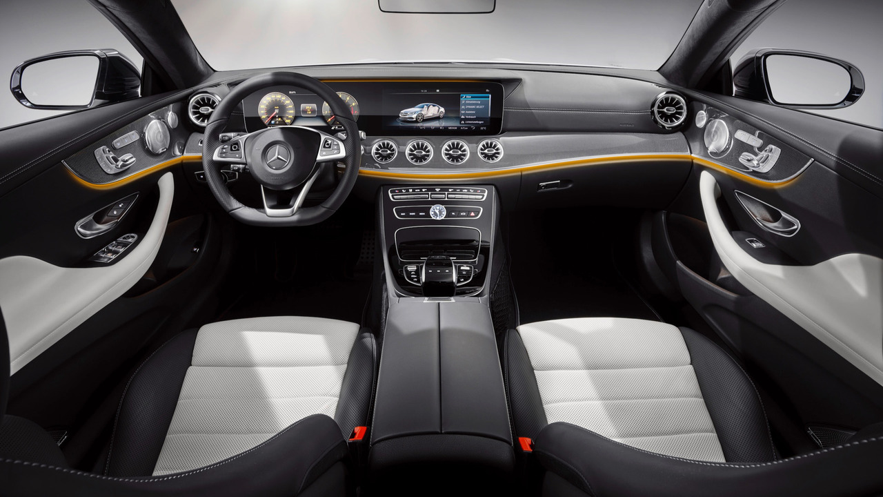 İç mekanda genel olarak dört kapılı kardeşinin etkileri görülen otomobilde farklı döşeme ve kaplama seçenekleri ve iki adet tekli arka koltuk sunulurken havalandırma çıkışlarının jet motoru egzozları gibi görünmesi de E Serisi Coupé'nin farklılıkları arasında.