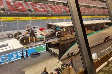 Mercedes, çekim gününün ardından W13'ü Barselona'ya getirdi