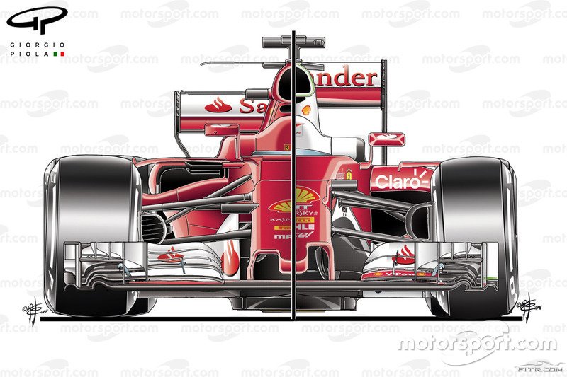 Ferrari daha önce tüm paket yerine aracın bir veya iki bölümüne odaklanıyordu fakat SF70H ile takımın bu trendi bitirdiğini söyleyebiliriz. Diğer çözümler kadar ekstrem olmasa da, iki tarafın da iyi yanlarını taşıyor demek sanırım yanlış olmaz.