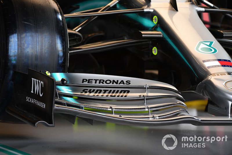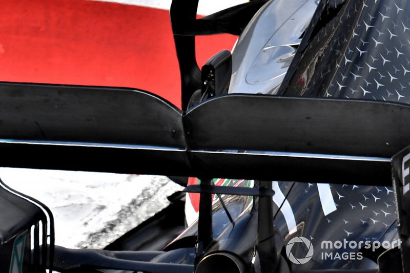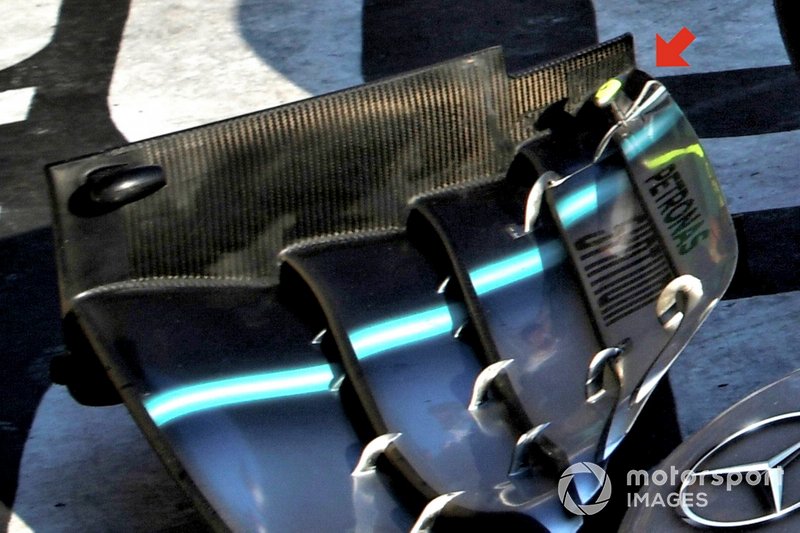 Mercedes'in yeni DRS aktivasyon kolu oldukça dikkat çekiciydi. Mercedes geleneksel olarak performansını iyileştirmek için ön kanat ve arka kanatta tırtıklı yapılar kullanan takımlardan birisi. Ancak DRS aktivasyon kolu, kanadın performansında istenmeyen etki uyandırabileceği için her zaman doğal kalıyordu. DRS aktivasyon kolu üzerinde yer alan tırtıklar, sürgü gibi çalışacak ve bu bölümdeki hava akımı oldukça karışık olacak. Takım, 2019'da DRS açıldığında kanat açısının daha derin olacak olması nedeniyle, böyle agresif bir çözüme geçmiş olabilir.