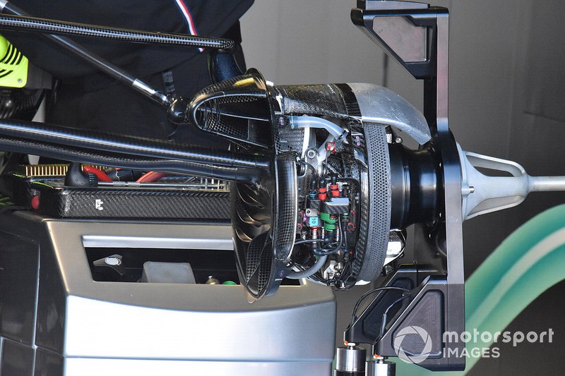 Bunun yanında, üflemeli aksın yasaklanmasına rağmen fren kanalı nispeten büyük tutuldu. Yeni kuralların aracın dış kısmındaki kötü havayı engelleyecek şekilde yazılmasının ardından, Mercedes'in bu tasarımı daha çok ortada bir tasarım gibi görünüyor.