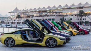 BMW Abu Dhabi Motors, olağanüstü renklere boyadığı ve dikkat çekmek için birçok kit eklediği ilginç otomobiller ile biliniyor. Örneğin bu i8’leri aldılar ve biraz boyadılar: Lav Kırmızısı, Austin Sarısı, Lav Yeşili, Alacakaranlık Moru, Lav Turuncusu ve Lav Sarısı.