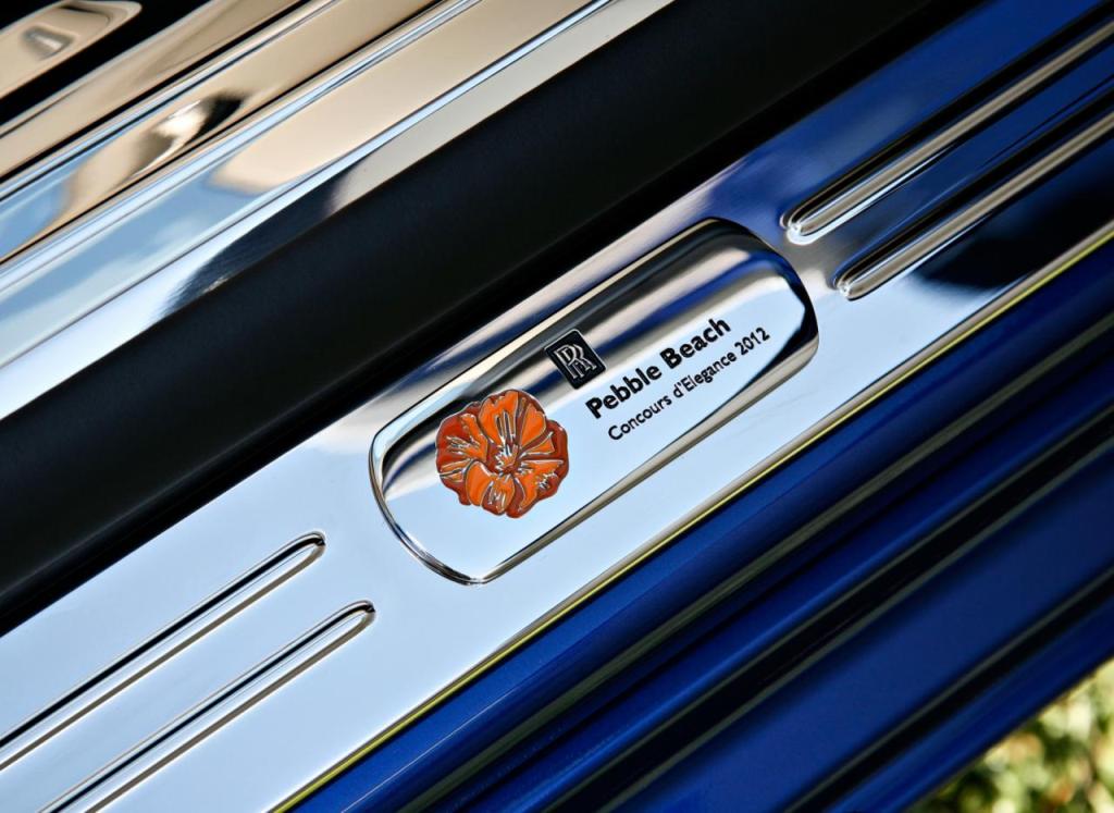 Mavi beyaz gövde rengiyle dikkatleri üzerine çeken araçta parlak jantlar ve buzlu camdan üretilen bir Spirit of Ecstasy kullanılmış. Dikkatli bakıldığında görülebilen turuncu renkli şerit aracı boydan boya geçerken iç mekanda kafalıkların üzerine işlenen Pebble Beach logolarında da aynı rengin kullanıldığı görülüyor. Parlatılmış kapı eşiklerinde Pebble Beach anagramları bulunan otomobilin iç mekanında beyaz renkli döşemeler dikkat çekiyor.
