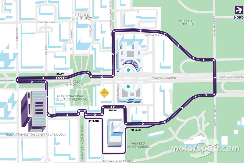 Motorsport.cum'un bu yılın başında açıkladığı üzere pist, Esposizione Universale Roma'da bulunuyor.