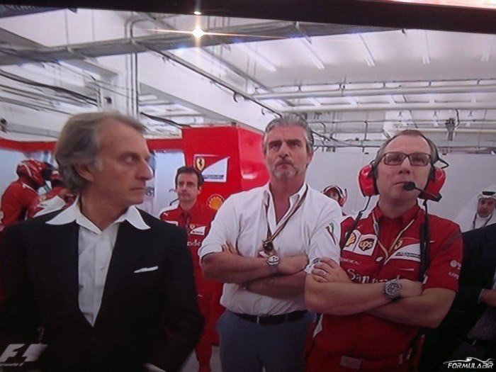 Ezcümle Ferrari performans olarak sınıfta kalmıştı. Peki bu performansın sorumlusu ve hesap ödemesi gereken kimdi? Bahreyn GP’sine kadar bu performans seviyesi ile gitti Ferrari takımı. Bardağı taşıran son damla ise takım başkanı Luca di Montezemolo’nun da izlemeye gittiği Bahreyn GP’sinde geldi. Yarışta Ferrari’nin 9. ve 10. sıralarda kalması Luca’yı çileden çıkartmıştı. Aynı zamanda Ferrari’nin yarış içinde tabiri caizse can çekişip düzlüklerde bütün pilotlara geçilmesi cabasıydı. 1960’lı yıllarda “Aerodinami iyi motor yapamayanların işidir” diyen Enzo Ferrari’nin kurmuş olduğu takım 2014 yılında bu söze nazire yaparcasına Mercedes motorlu araçların tozunu yuttu. Luca di Montezemolo’nun bu duruma ne kadar sinirlendiği fotoğraftan anlaşılabiliyor.