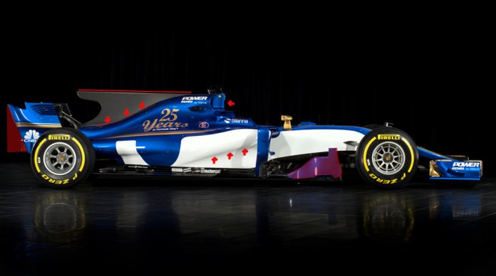 2017’de yürürlüğe giren yeni kuralların etkisi Sauber C36’nın yan bölümünde daha fazla belli oluyor. Uzun ve yüksek bargeboard aracın önüne yakın şekilde konumlandırılırken, yüksek motor kapağının şasi ile neredeyse bütünleşik olduğunu görüyoruz. Tabi ki kullanılan beyaz renk göz yanılgısına neden olabilir, bu yüzden motor kapağının ne kadar geniş olduğunu ancak testler esnasında görebileceğiz.