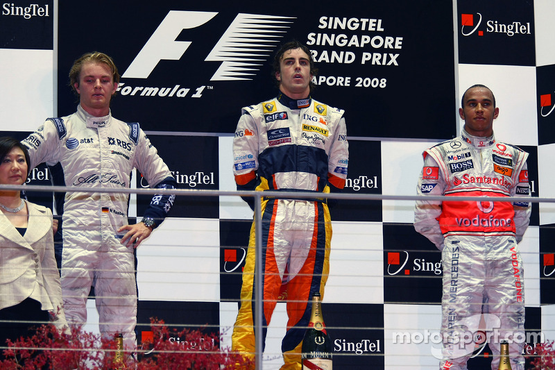 2008: 1. Fernando Alonso, 2. Nico Rosberg, 3, Lewis Hamilton