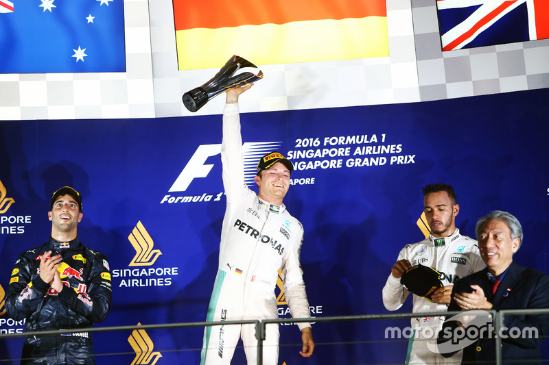2016: 1. Nico Rosberg, 2. Daniel Ricciardo, 3. Lewis Hamilton