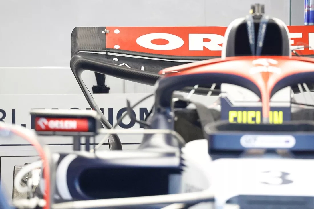 AlphaTauri AT04'ün arka kanat tertibatı, tıpkı kardeş takımı Red Bull gibi kare şeklinde bir uç bölüme sahip.