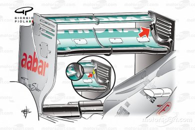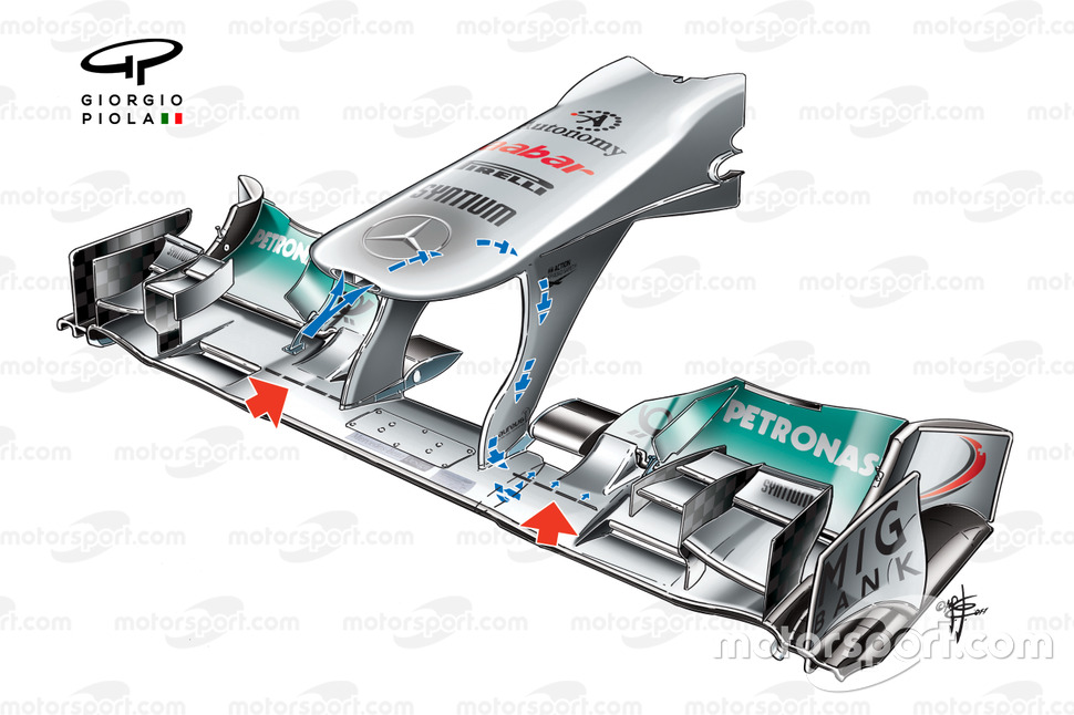 Bu, Mercedes'in 2011'in sonuna doğru çalışmaya başladığı başka bir sistemin üzerine kuruldu ve o dönemde Giorgio Piola tarafından ortaya çıkarılmıştı.