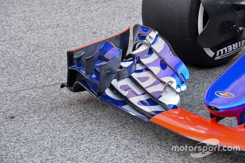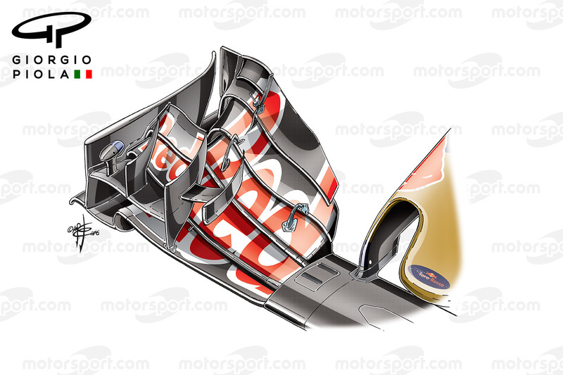 En göze çarpan fark ise, McLaren'in geçen yıllar kullandığı tasarıma benzeyen, üst iki kanatçığın yapısındaki değişiklikler. Şişik aksın korunmuş olması ise, Toro Rosso'nun halihazırda üzerinde emek harcadığı ön kanat ve diğer yapıların sağladığı hava akımı ile yola devam ettiklerini gösteriyor.